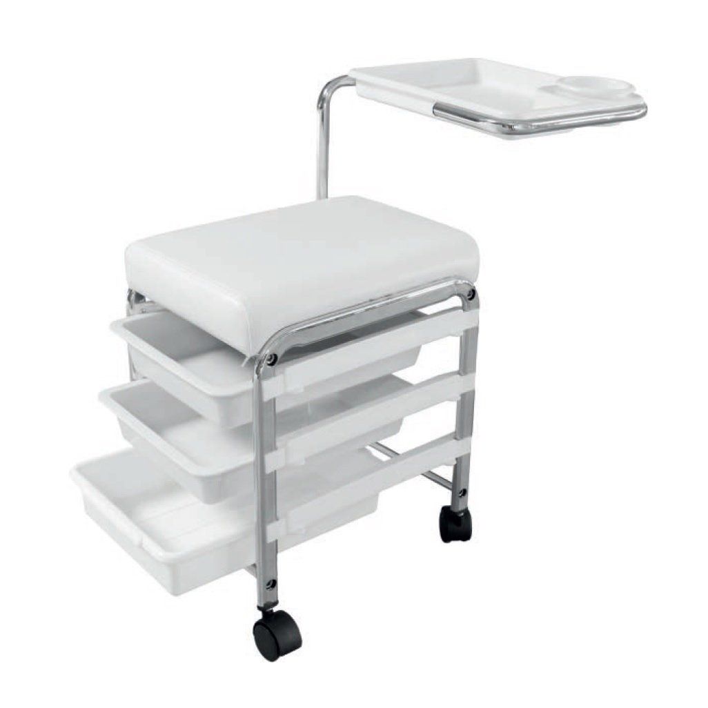 Postazioni manicure moderne, eleganti e adatte a piccoli e grandi spazi di lavoro. Carrelli portaoggetti con rotelle o fisse.